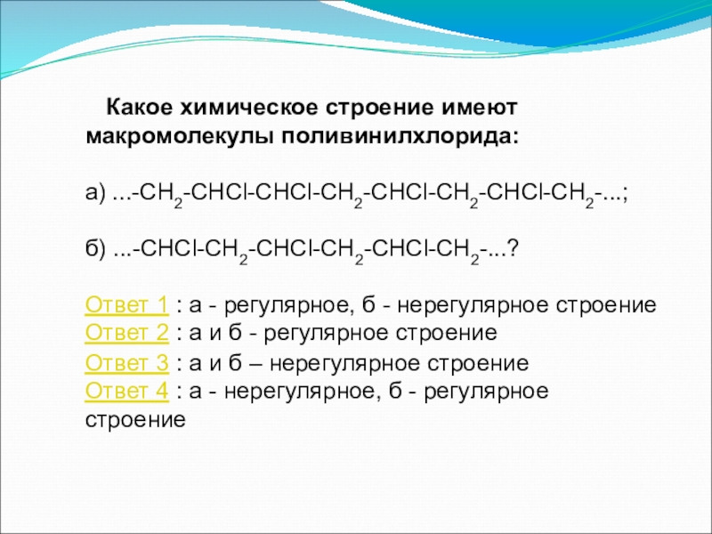 Полимеры, макромолекулы которых построены одним из этих способов, называют регулярными.