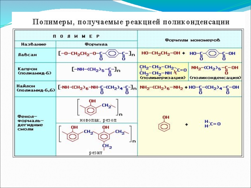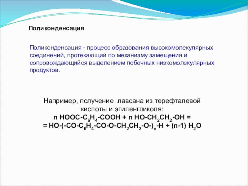 Например, получение лавсана из терефталевой кислоты и этиленгликоля: