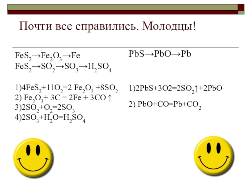 2PbS + ЗО2 = 2РЬО + 3SO2↑