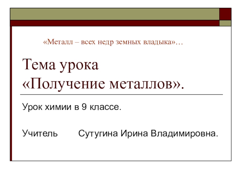«Металл – всех недр земных владыка»…