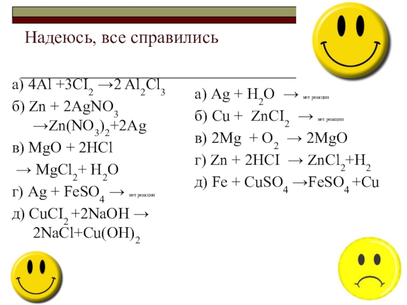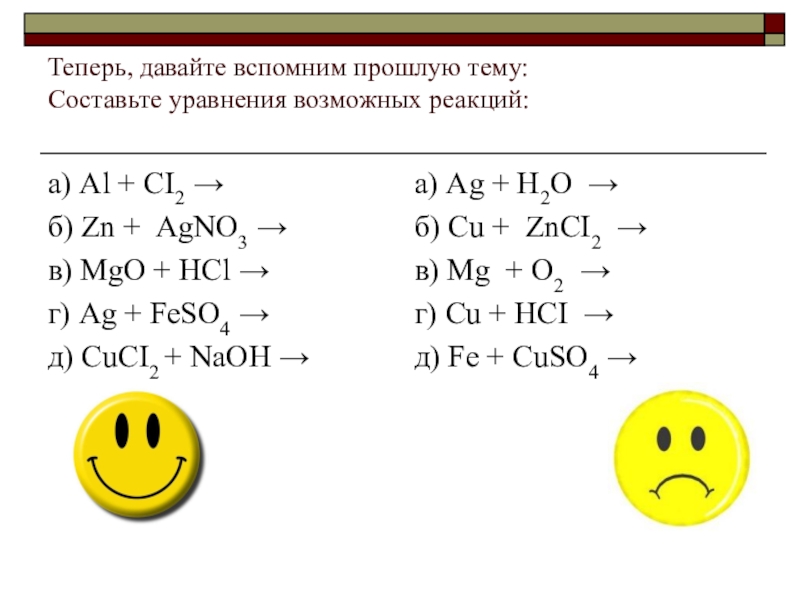 б) Cu + ZnСI2 →