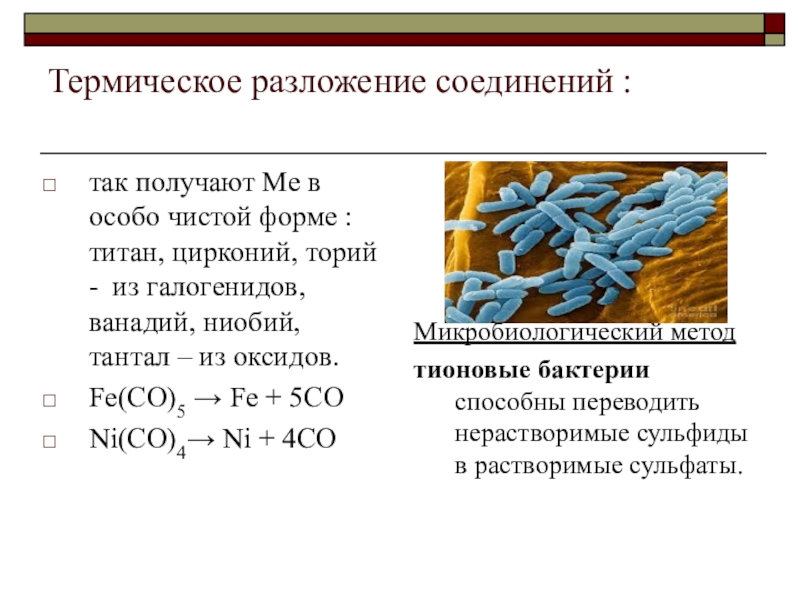 тионовые бактерии способны переводить нерастворимые сульфиды в растворимые сульфаты.