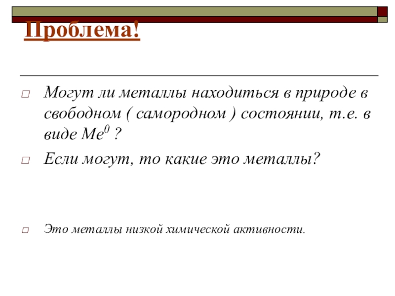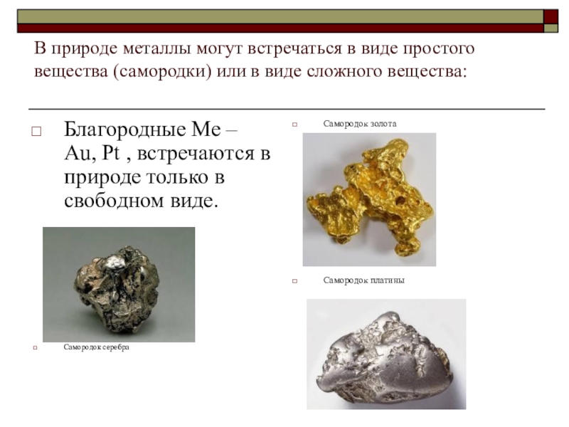 Благородные Ме – Аu, Рt , встречаются в природе только в свободном виде.