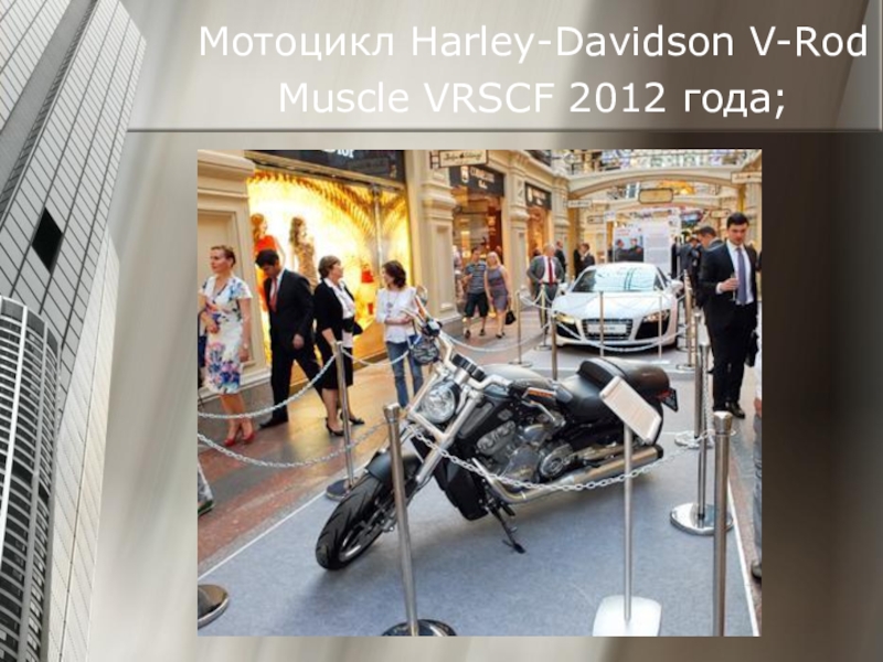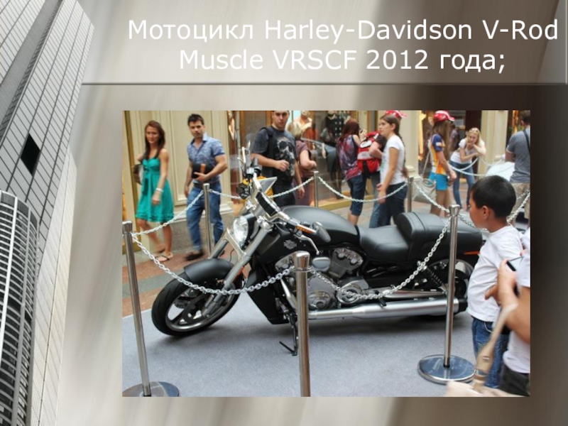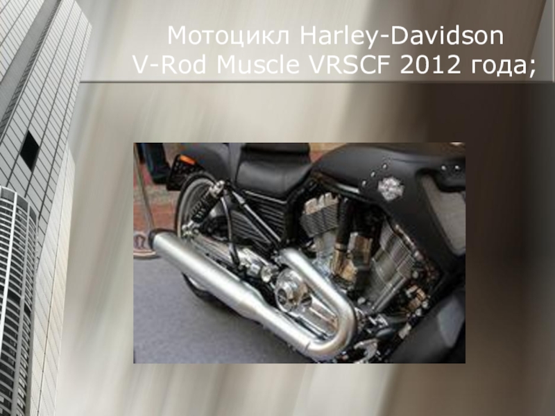 Слайд 28Мотоцикл Harley-Davidson V-Rod Muscle VRSCF 2012 года;
