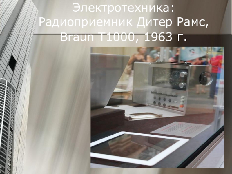 Слайд 25Электротехника: Радиоприемник Дитер Рамс, Braun Т1000, 1963 г.
