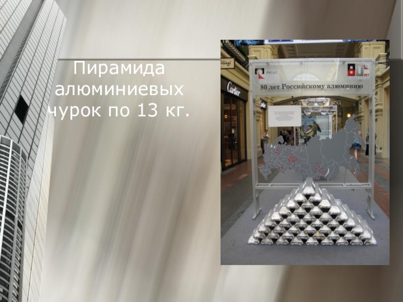 Слайд 5Пирамида алюминиевых чурок по 13 кг.