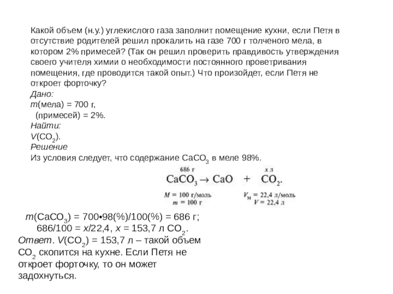 Ответ. V(CO2) = 153,7 л – такой объем СО2 скопится на кухне. Если Петя не откроет форточку, то он может задохнуться.