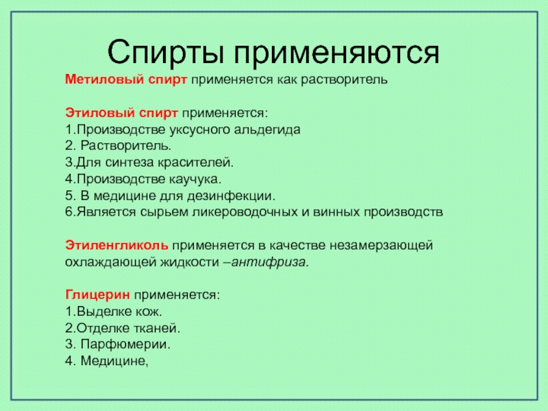 Этиленгликоль- бесцветная жидкость. Тяжелее воды. tзам=-13.С. Имеет сладковатый вкус. Ядовит.