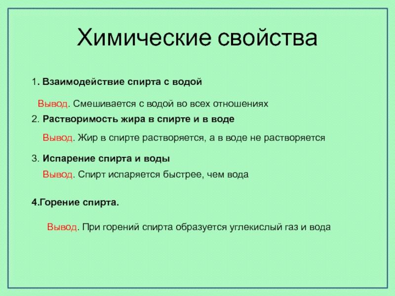 Вывод. Жир в спирте растворяется, а в воде не растворяется