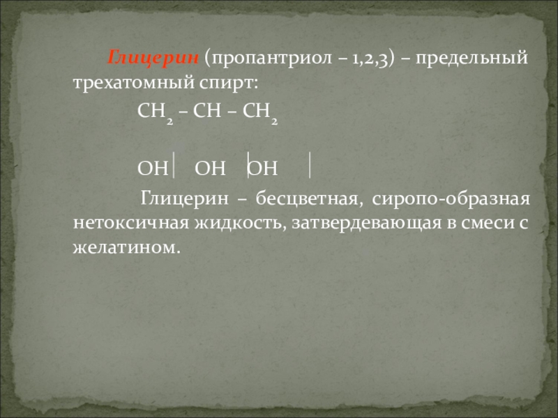 Слайд 15 Глицерин (пропантриол – 1,2,3) – предельный