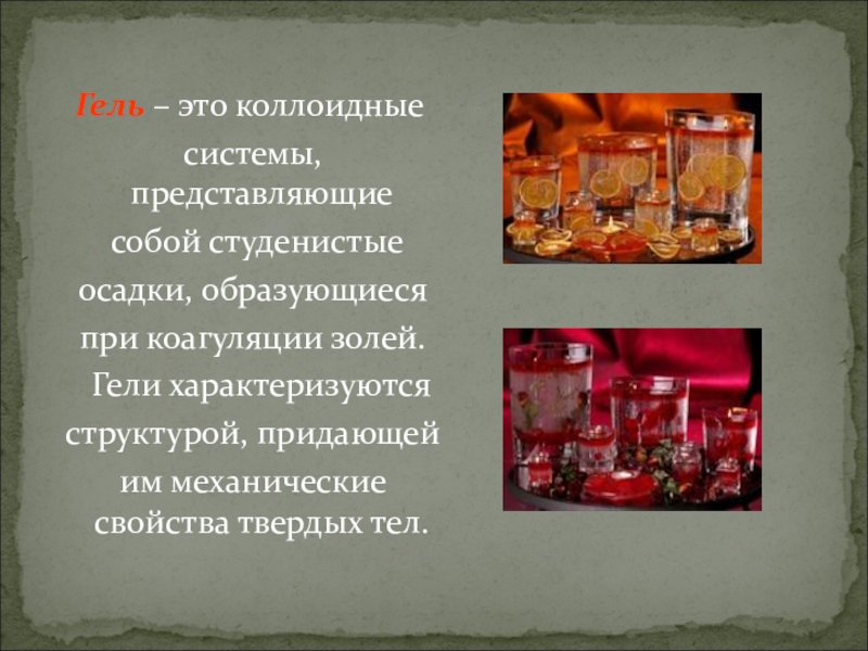 Глицерин – бесцветная, сиропо-образная нетоксичная жидкость, затвердевающая в смеси с желатином.