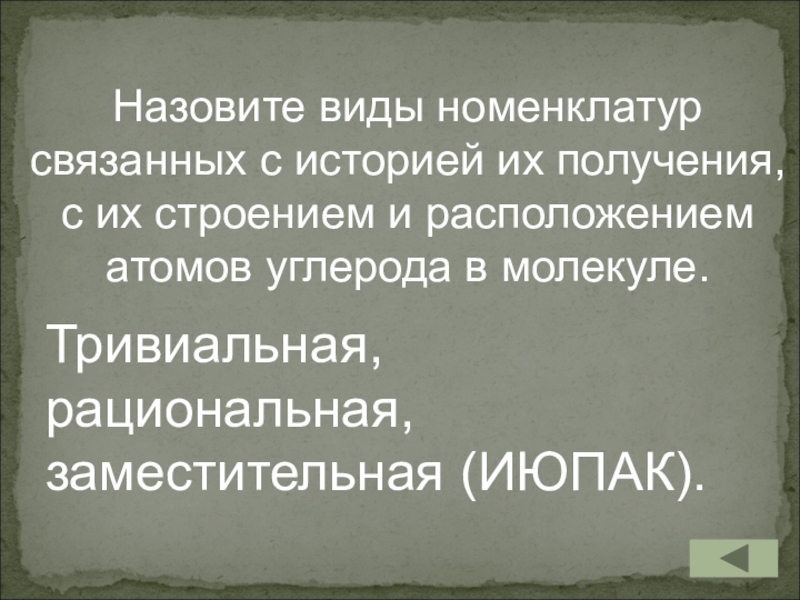 Тривиальная, рациональная, заместительная (ИЮПАК).