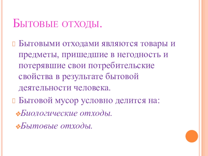 потерявшие свои потребительские свойства в результате бытовой деятельности человека.