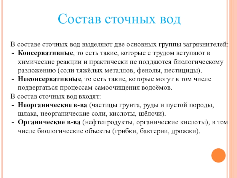 В составе сточных вод выделяют две основных группы загрязнителей: