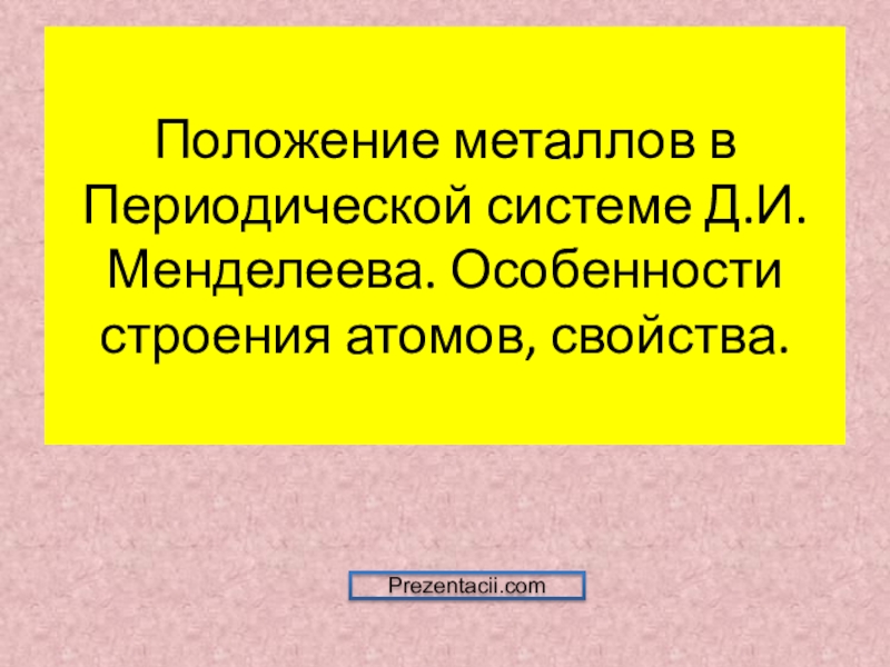 Положение металлов в Периодической системе Д.И. Менделеева. Особенности строения атомов, свойства.Prezentacii.com