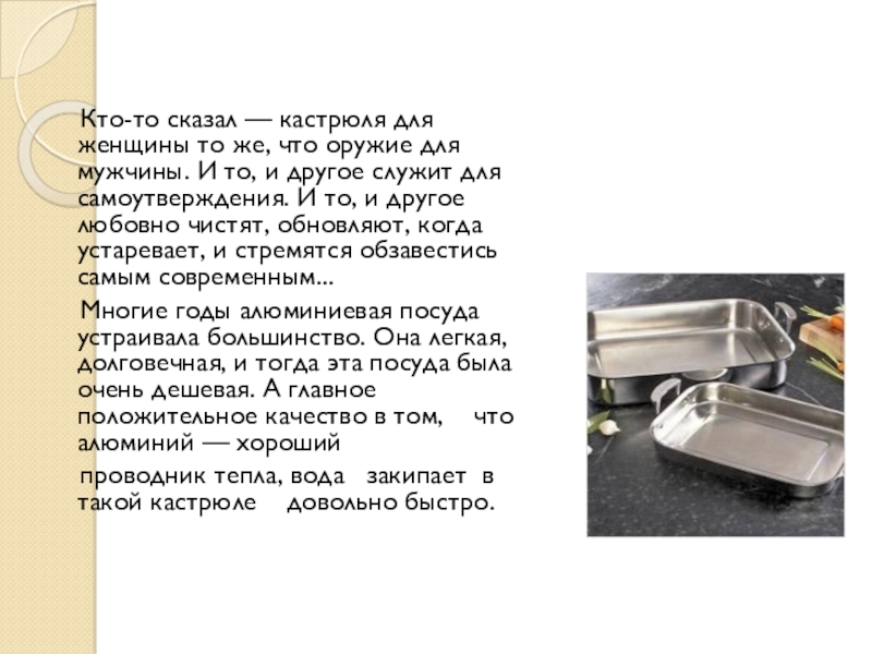 Слайд 8 Кто-то сказал — кастрюля для женщины то же, что