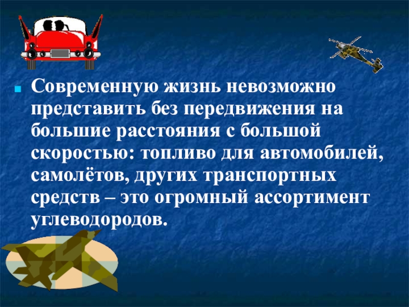 Слайд 42Современную жизнь невозможно представить без передвижения на большие расстояния с большой
