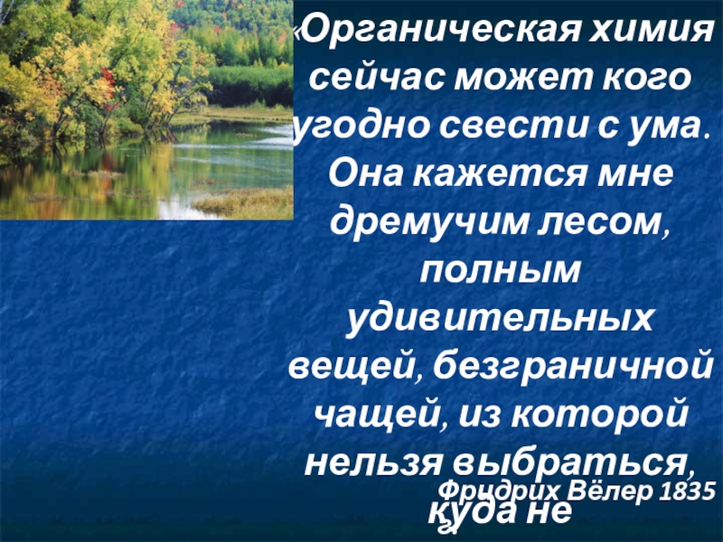 Слайд 2«Органическая химия сейчас может кого угодно свести с ума. Она кажется