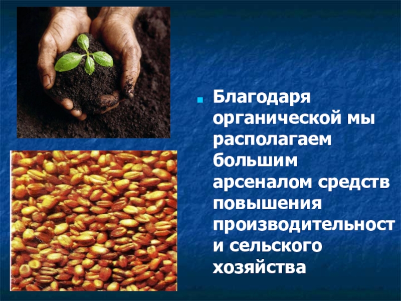 Слайд 41Благодаря органической мы располагаем большим арсеналом средств повышения производительности сельского хозяйства