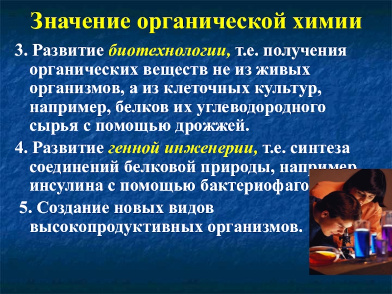 Слайд 403. Развитие биотехнологии, т.е. получения органических веществ не из живых организмов,