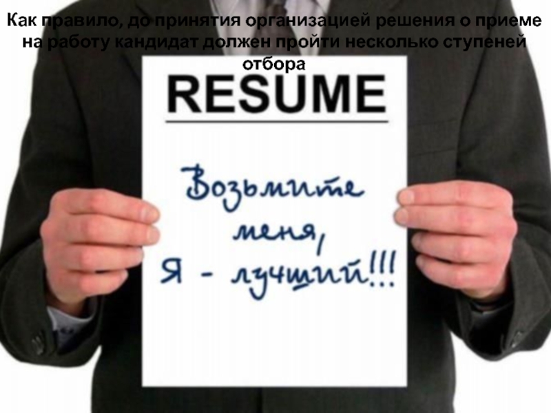 Слайд 9Как правило, до принятия организацией решения о приеме на работу кандидат