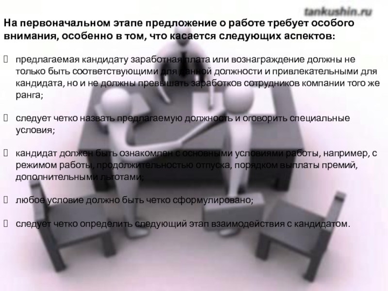 Слайд 14На первоначальном этапе предложение о работе требует особого внимания, особенно в