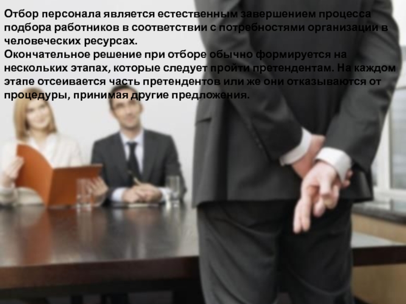 Слайд 8Отбор персонала является естественным завершением процесса подбора работников в соответствии с