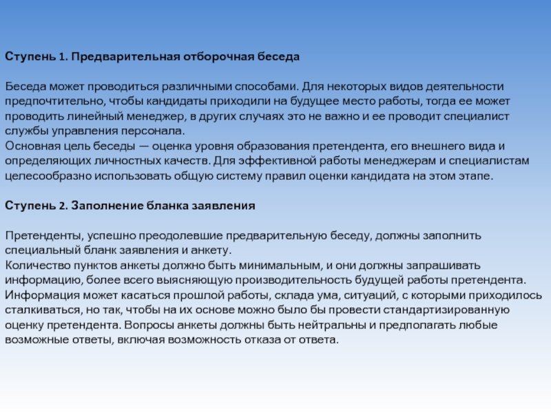 Слайд 10Ступень 1. Предварительная отборочная беседа