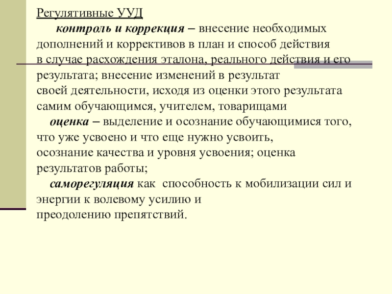 в случае расхождения эталона, реального действия и его результата; внесение изменений в результат