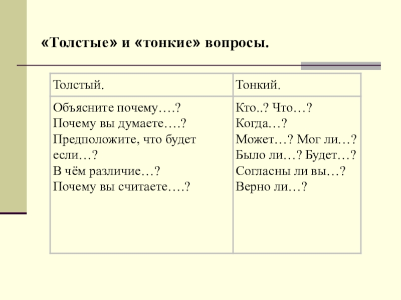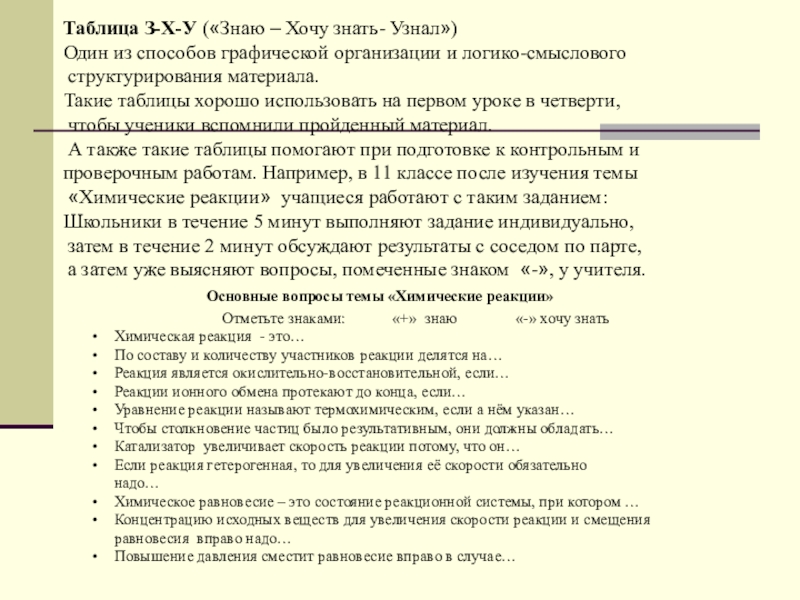 а затем уже выясняют вопросы, помеченные знаком «-», у учителя.