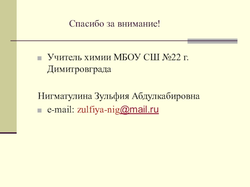 Учитель химии МБОУ СШ №22 г.Димитровграда