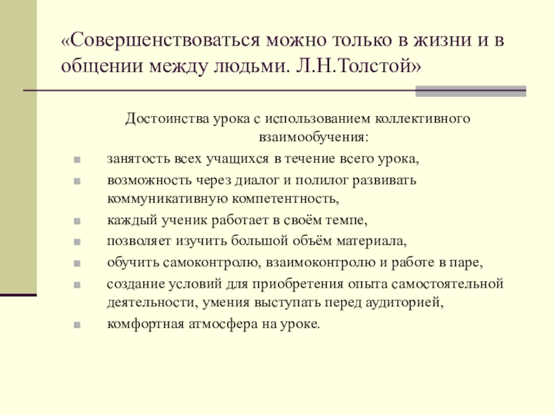 Слайд 25«Совершенствоваться можно только в жизни и в общении между людьми. Л.Н.Толстой»
