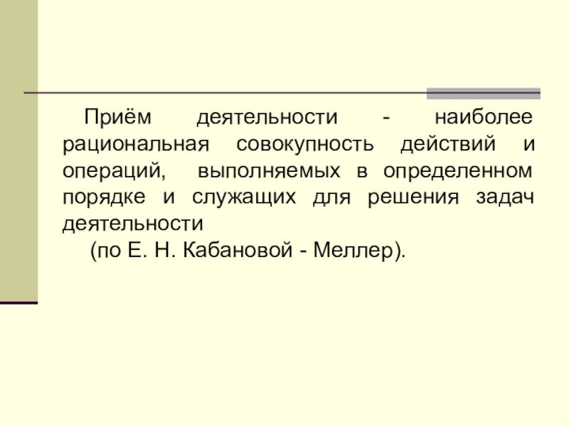 Слайд 11Приём деятельности - наиболее рациональная совокупность действий и операций, выполняемых в