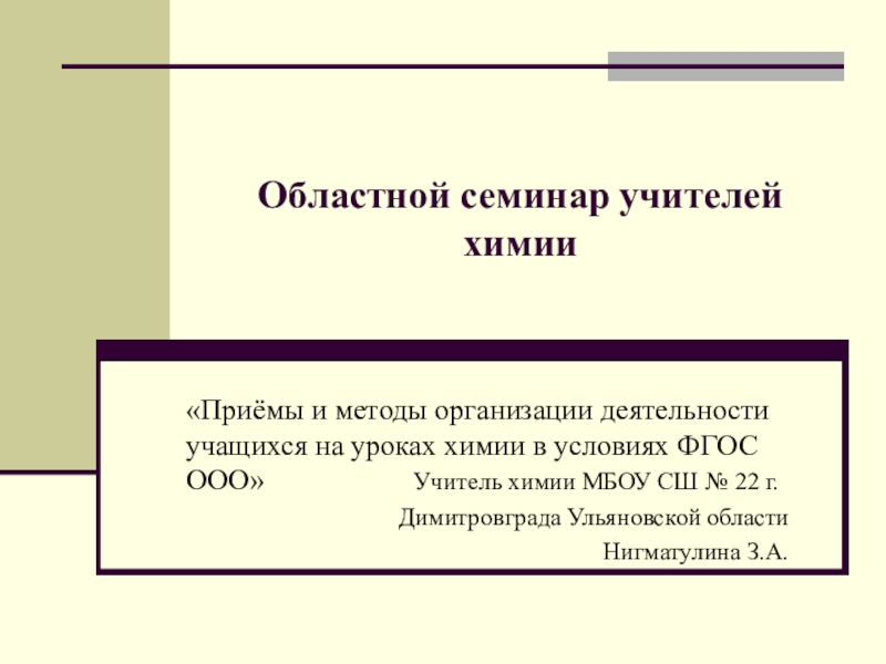 химии в условиях ФГОС ООО» Учитель химии МБОУ СШ № 22 г.