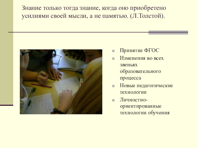 Слайд 2Знание только тогда знание, когда оно приобретено усилиями своей мысли, а