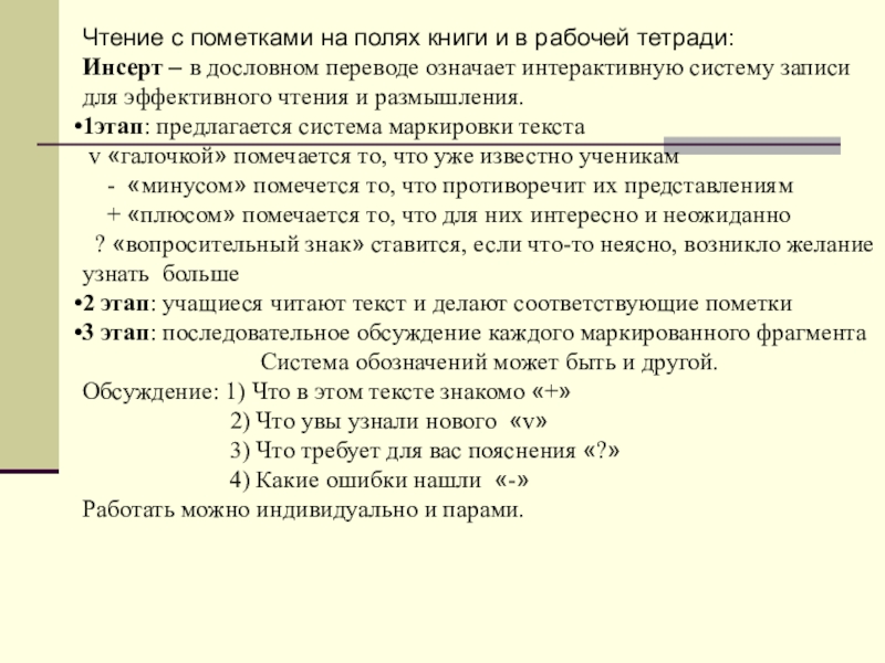 2 этап: учащиеся читают текст и делают соответствующие пометки