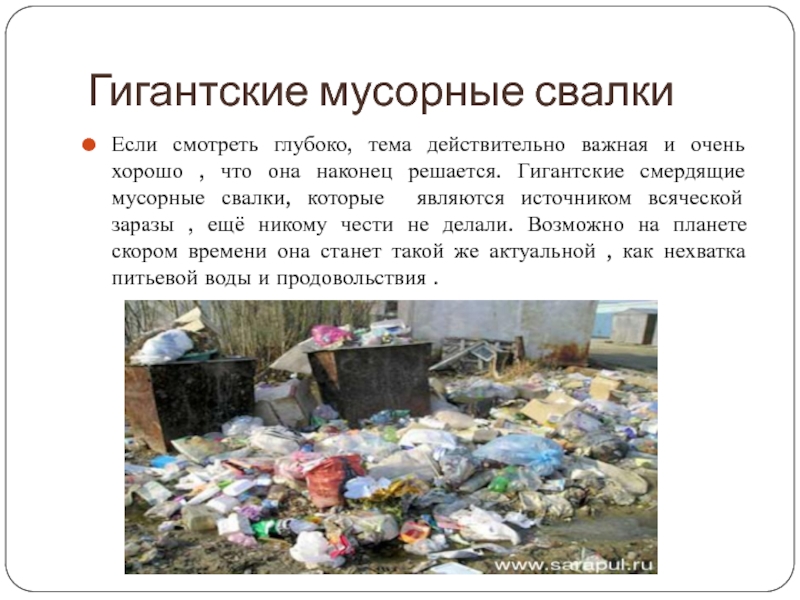 может стать строительство мусороперерабатывающего завода(МПЗ).