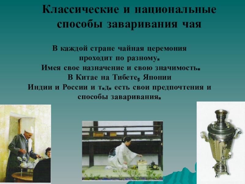 3. классические и национальные способы приготовления чайного напитка;