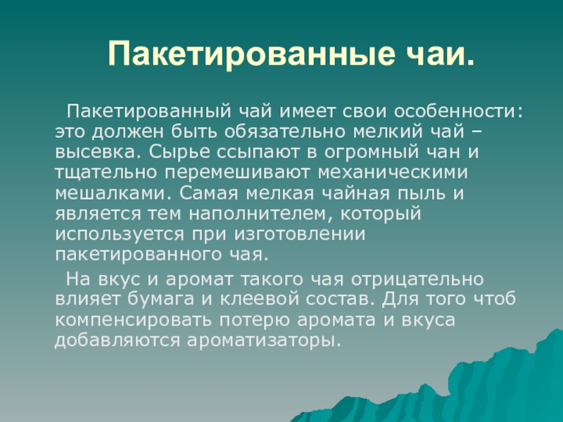 Слайд 14 Пакетированные чаи.