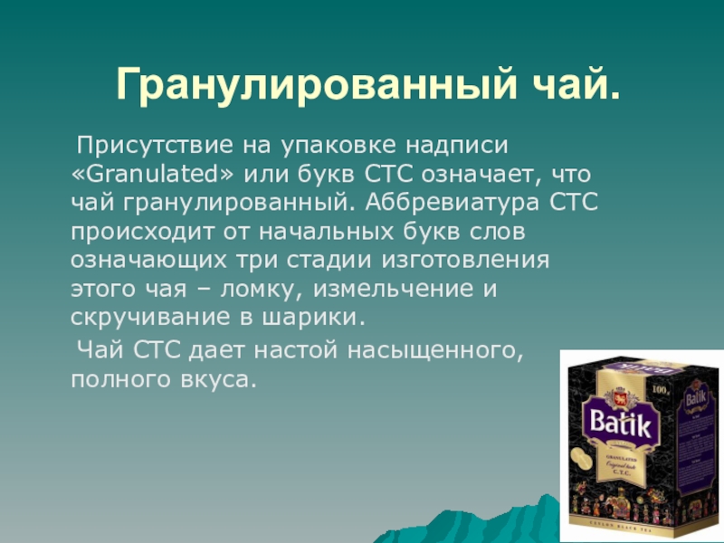 Слайд 15 Гранулированный чай.