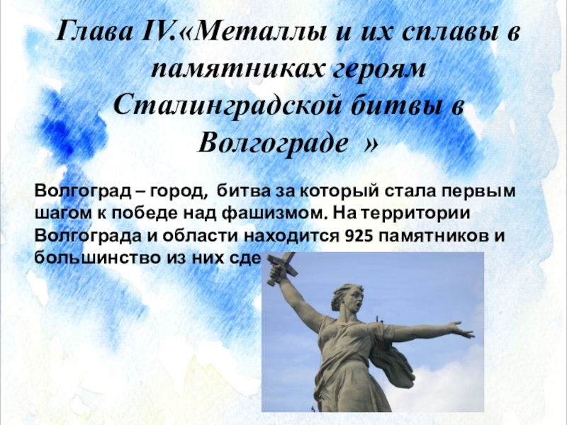 Волгоград – город, битва за который стала первым шагом к победе над фашизмом. На территории Волгограда и области находится 925 памятников и большинство из них сделано из металла.