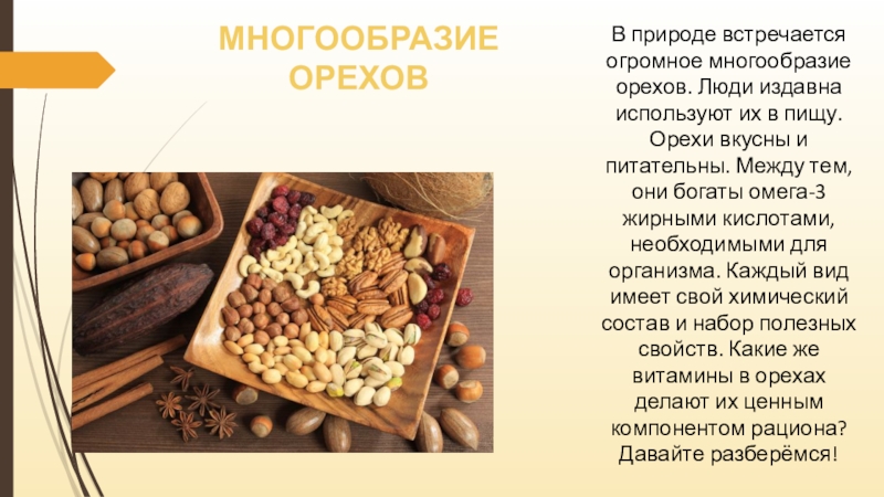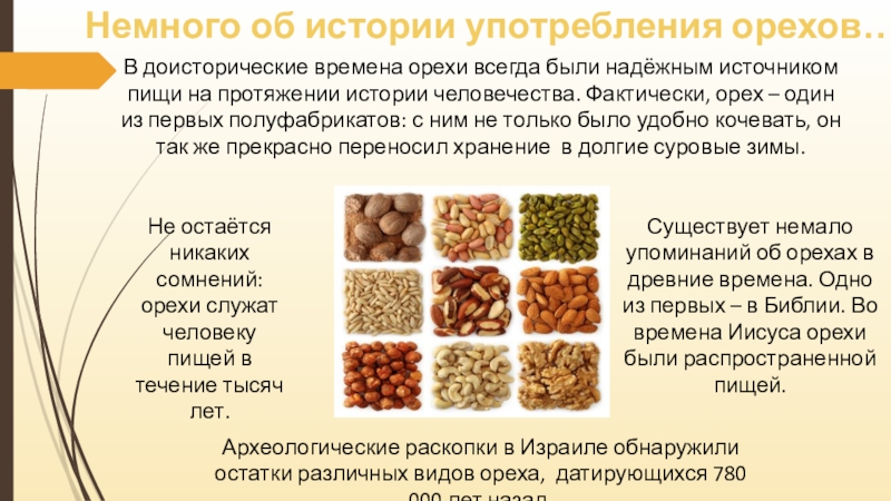 Не остаётся никаких сомнений: орехи служат человеку пищей в течение тысяч лет.