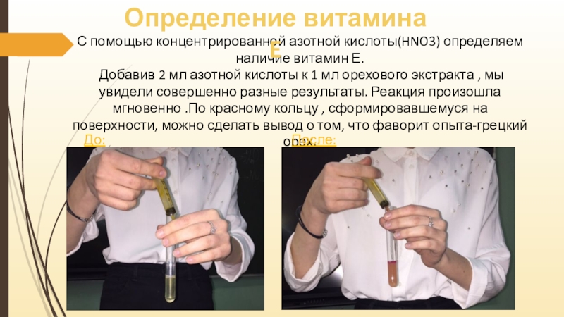 Благодаря этой реакции мы делаем вывод о том, что наибольшую концентрацию витамина B6 имеет грецкий орех.