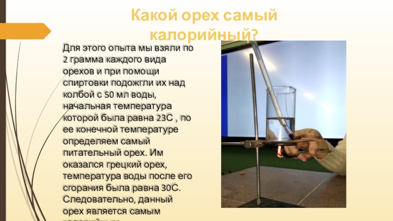 Видим , что более темно - синюю окраску принял экстракт ореха №1, то есть – грецкий орех, следовательно он и содержит больше всего белка.