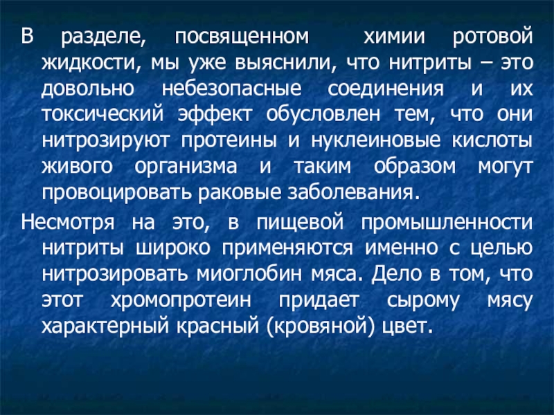 Слайд 21В разделе, посвященном химии ротовой жидкости, мы уже выяснили, что нитриты