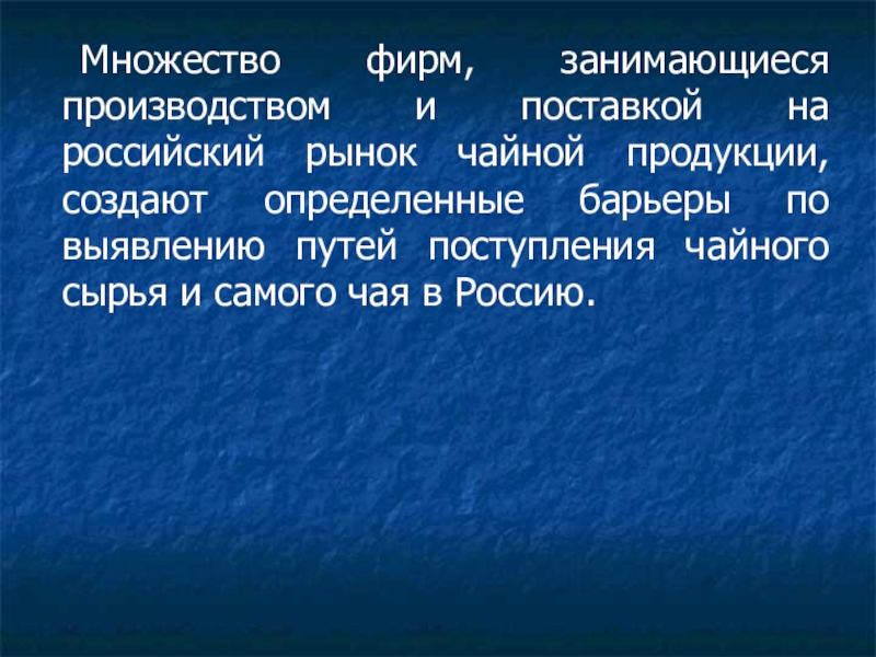 создают определенные барьеры по выявлению путей поступления чайного сырья и самого чая в Россию.