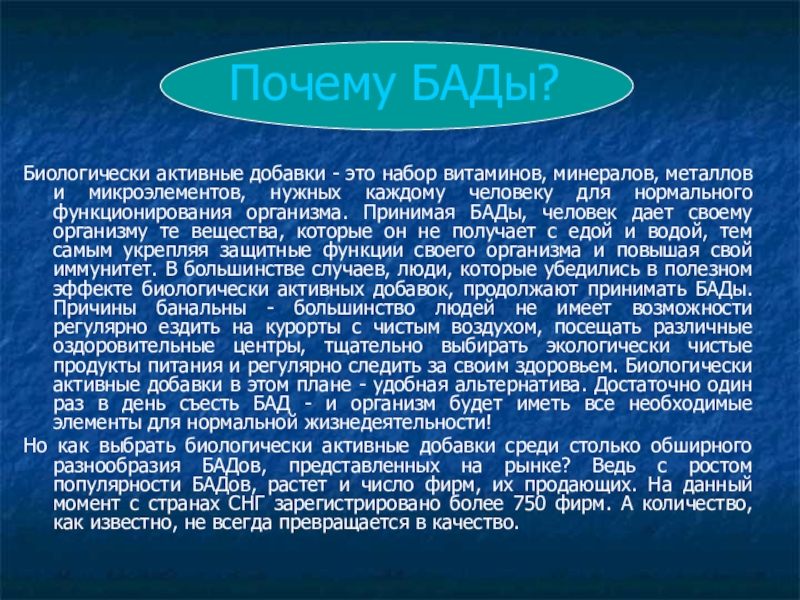Почему БАДы?