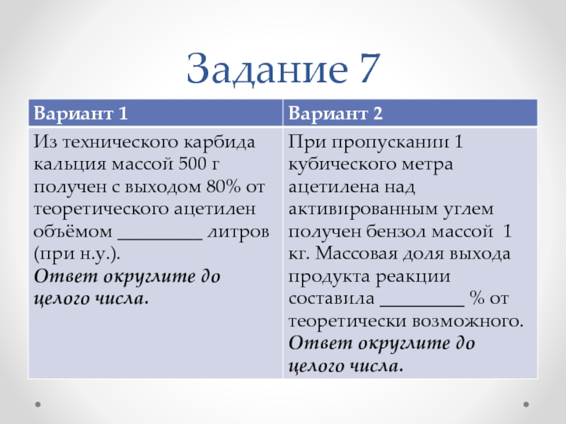 АЦЕТИЛЕН. БЕНЗОЛТренировочная работа