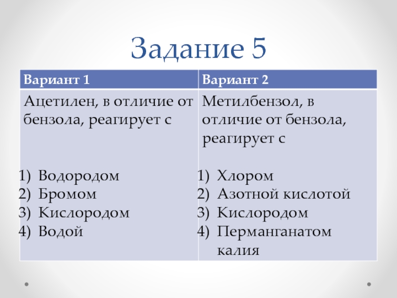 Презентация, доклад проверочной работы по темам Ацетилен и Бензол (10 класс)
