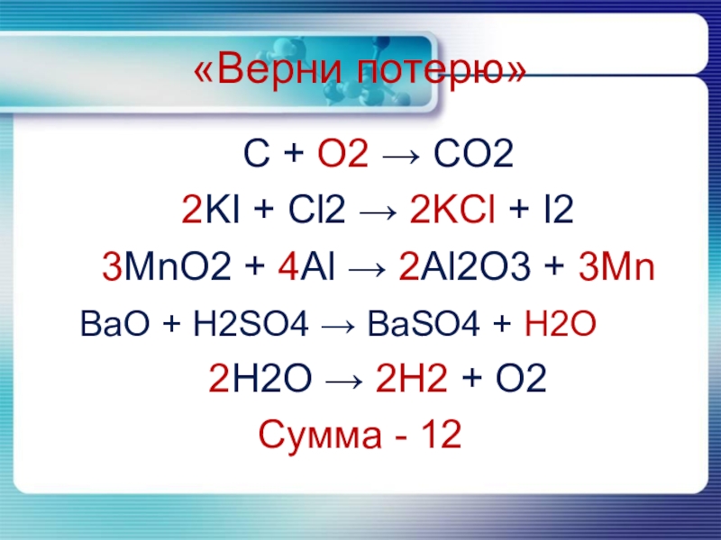 4. Al + HCl → AlCl3 + H2